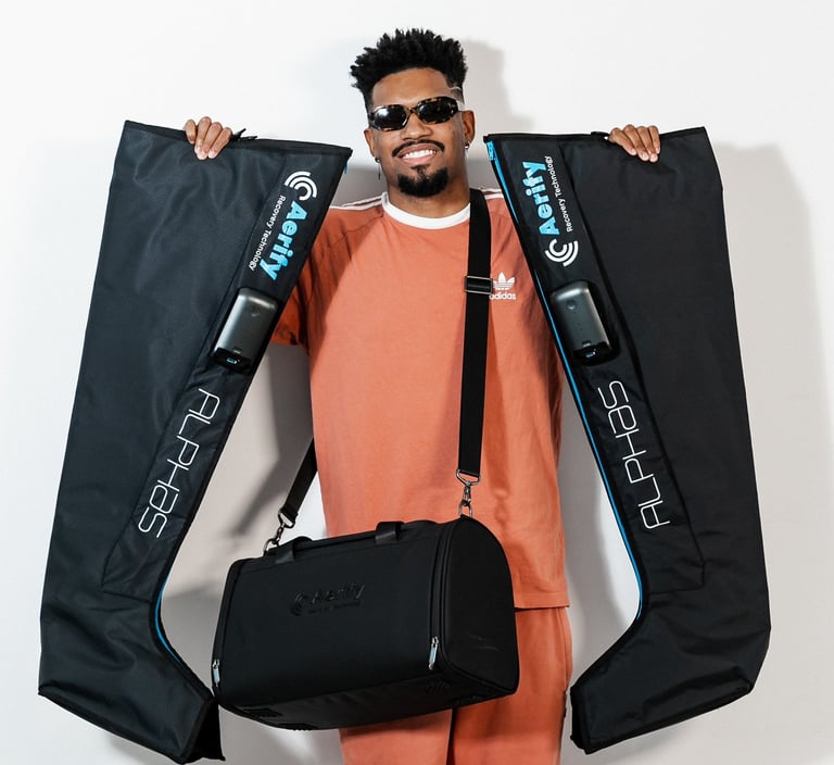 Aerify Air Compression Boots are designed to enhance your recovery using clinically-proven pressotherapy technology. With up to 8 air chambers that rhythmically inflate and deflate, these systems stimulate blood flow, flush out metabolic waste, and relieve muscle tension. Whether you’re an elite athlete, fitness enthusiast, or in rehabilitation, Aerify helps you bounce back faster, train harder, and stay in the game longer — all from the comfort of your home or facility.